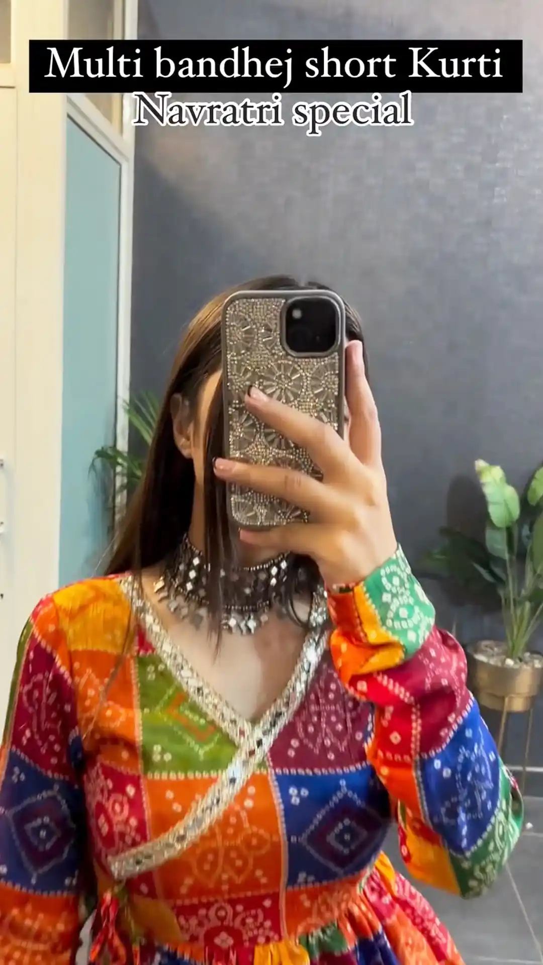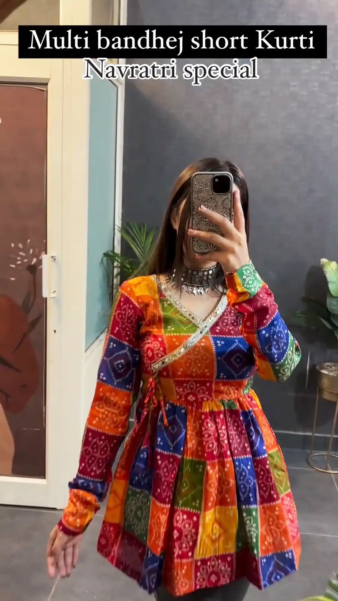 Navratri Special Multi Bandhej Short less Top