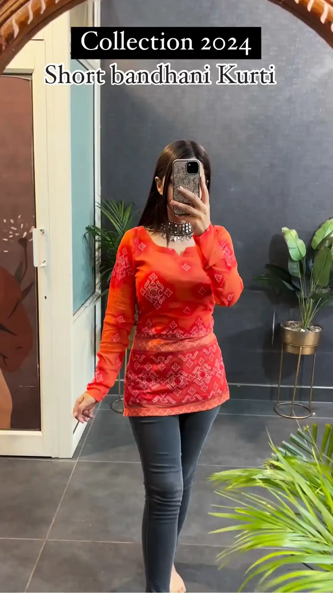 Festive Special Short Rust Orange Bandhani Kurti