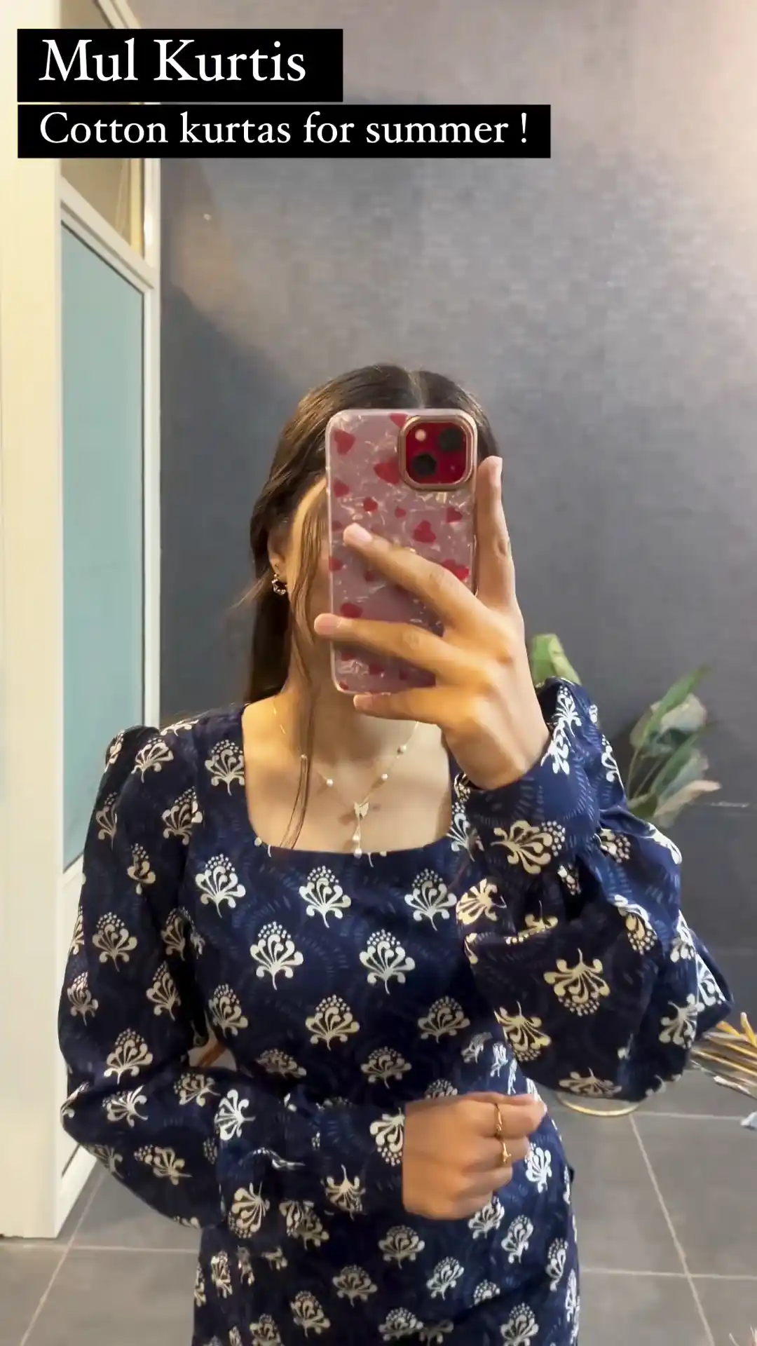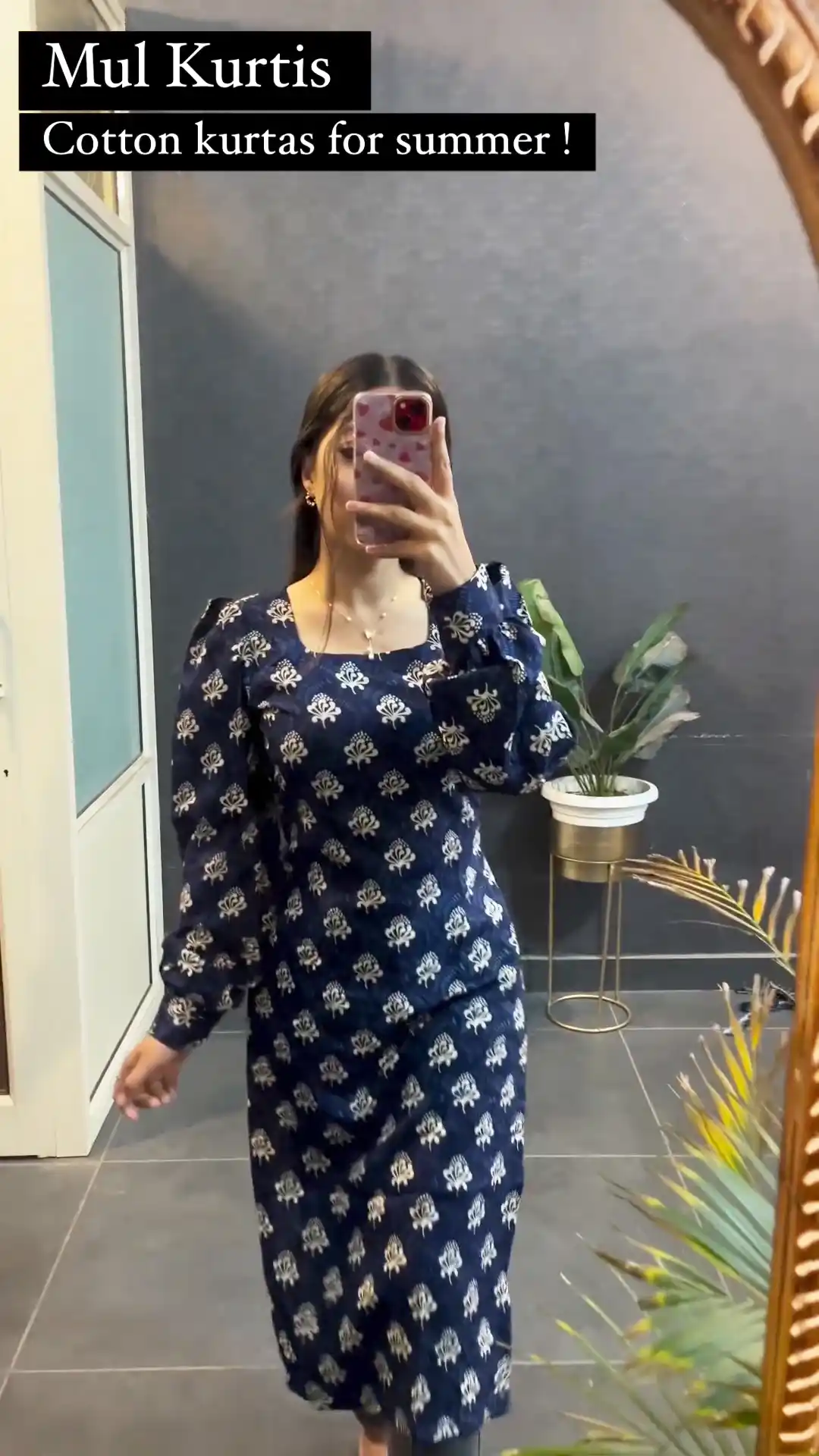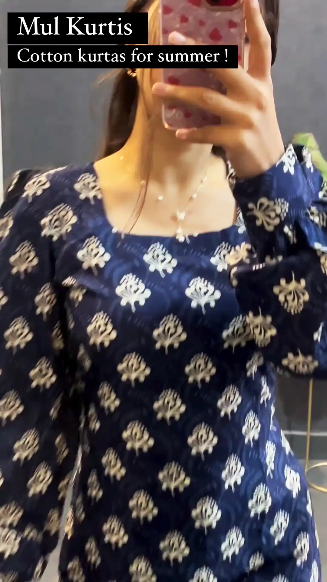 Blue Cotton Printed Kurti