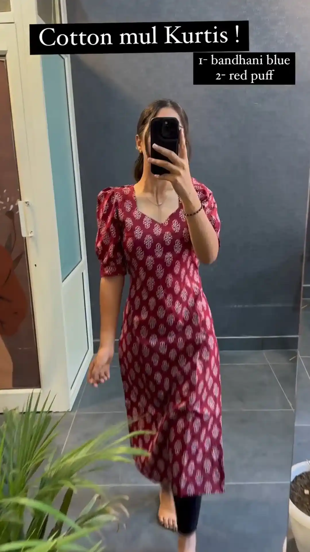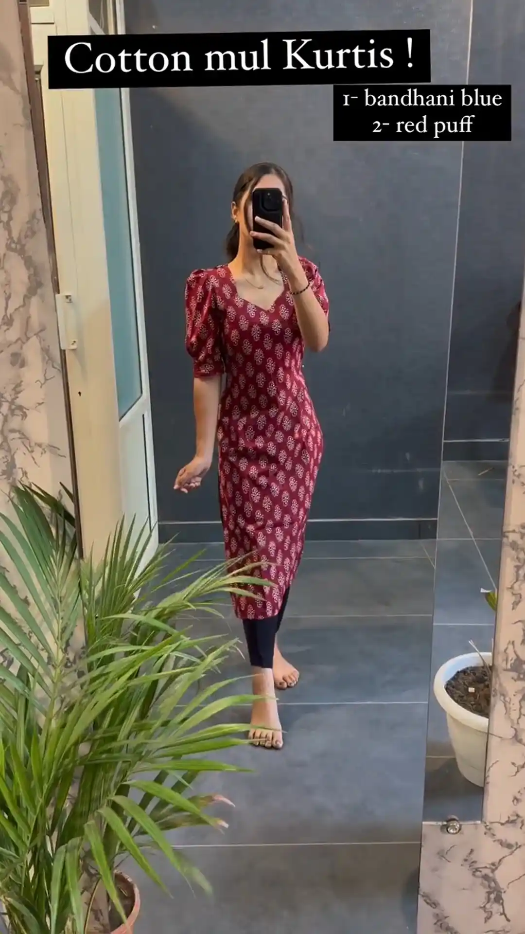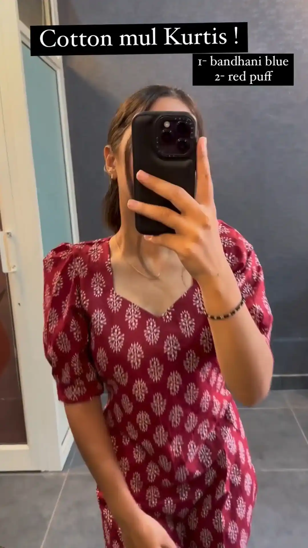 Red Cotton Printed Kurti