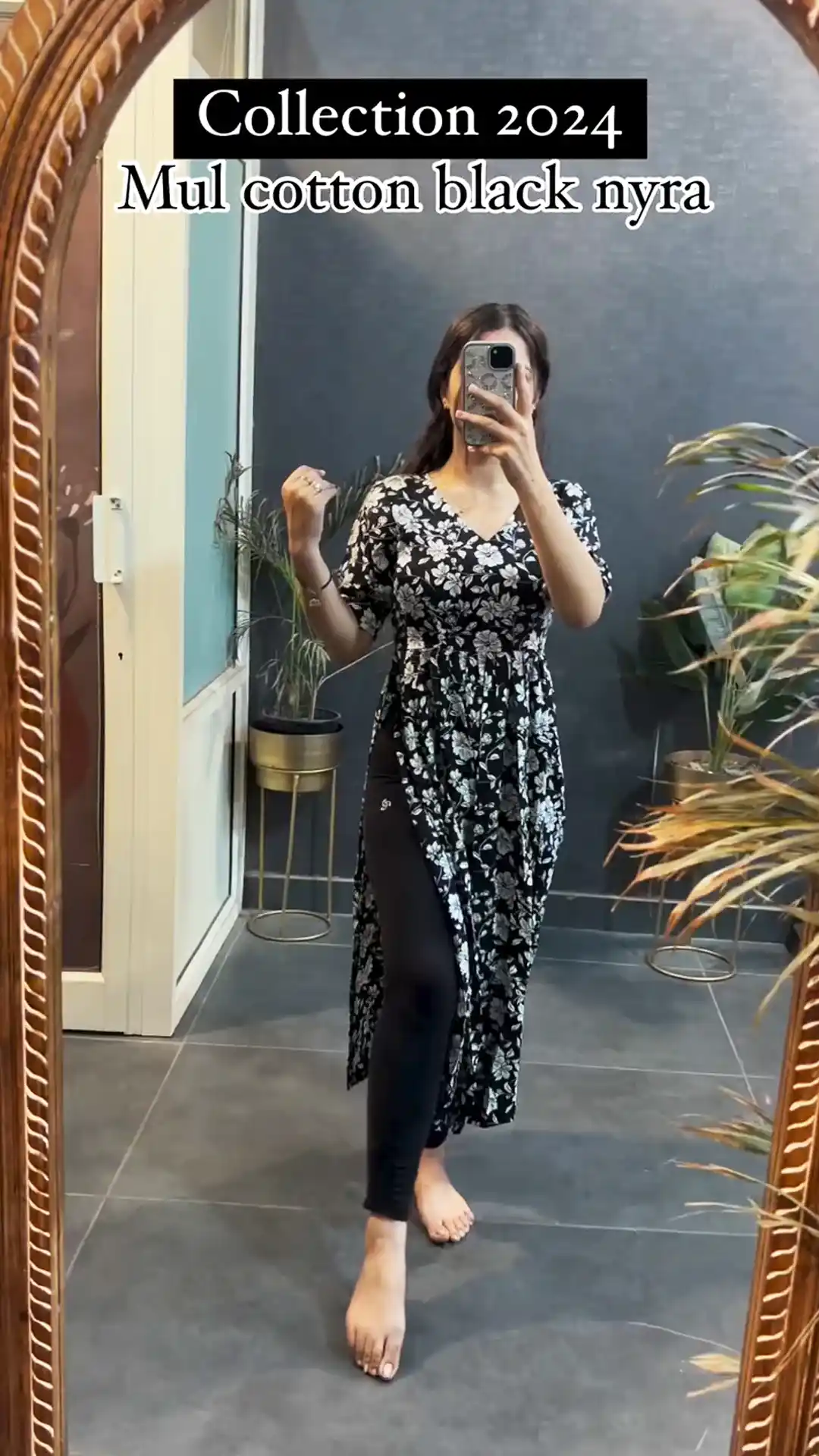 Top Trending Black Floral Printed Cotton Nyra Kurta