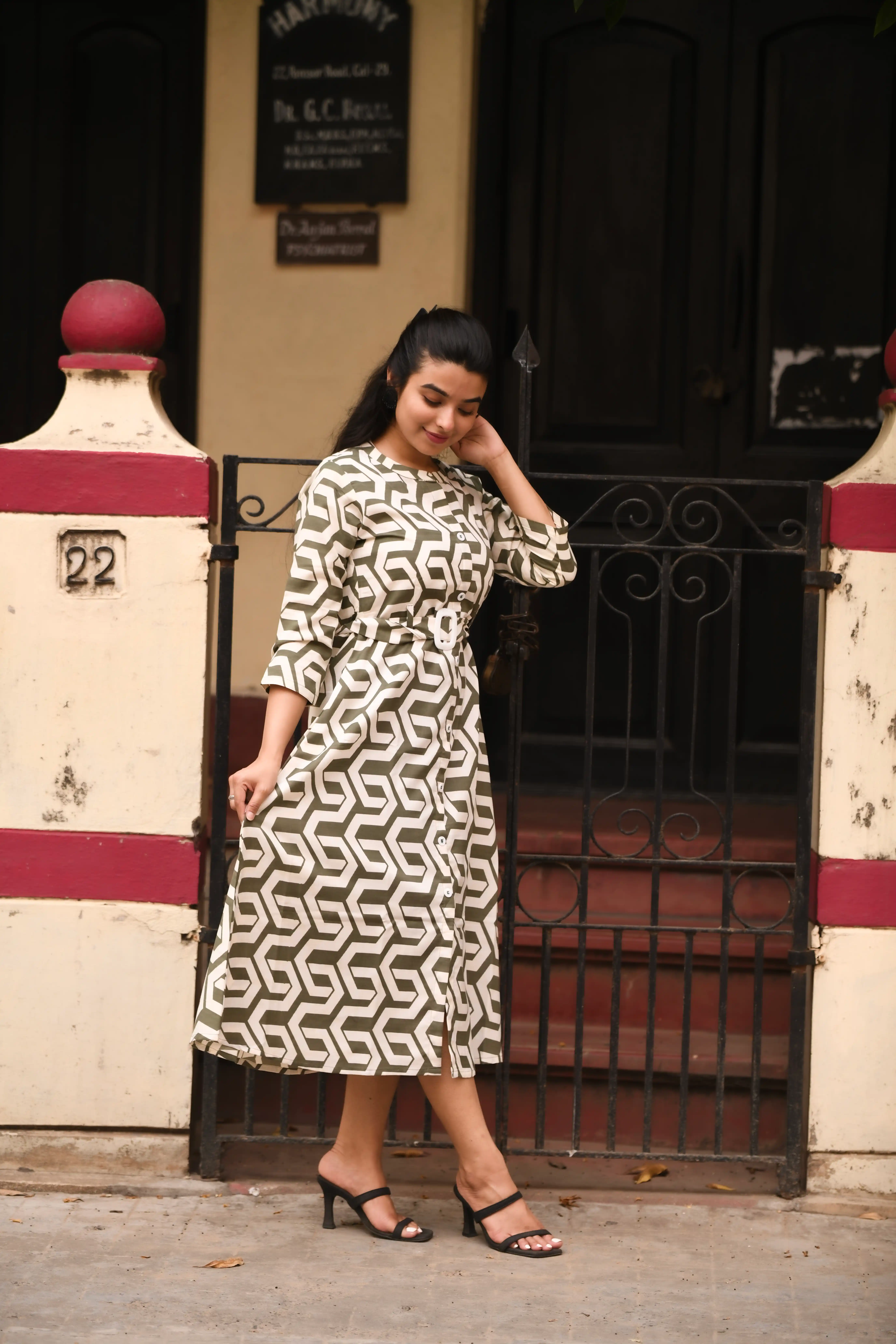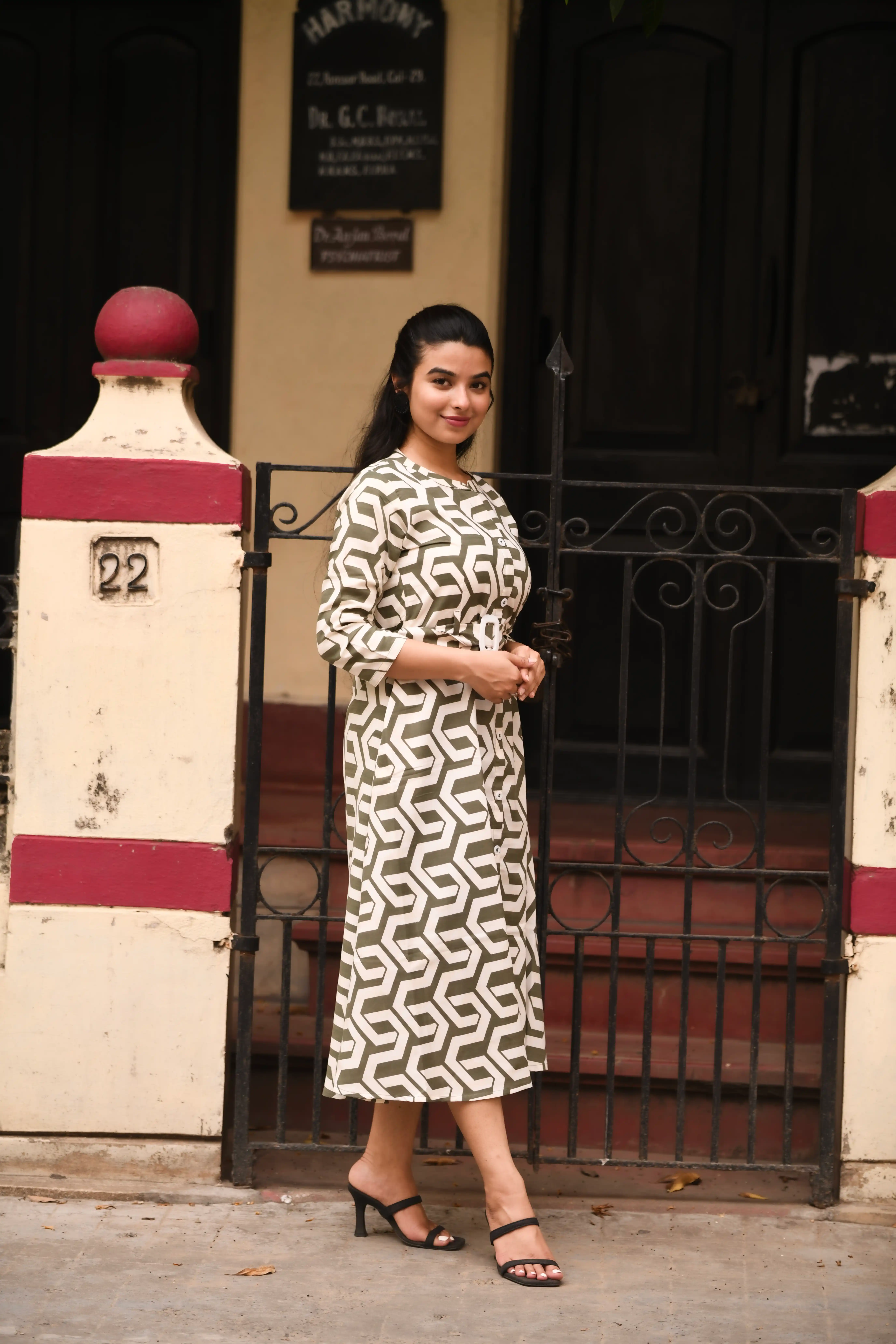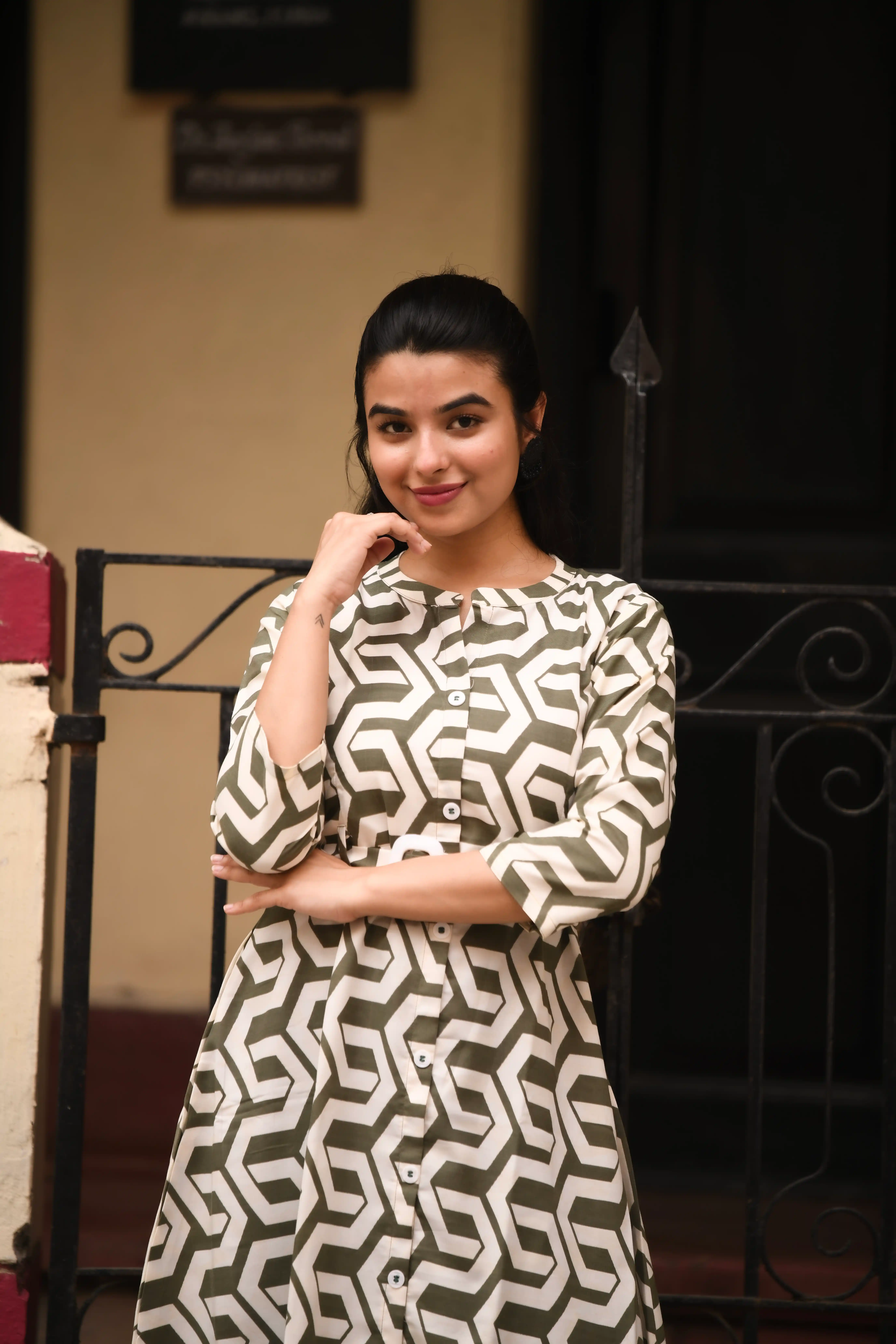 Samvrita Floral Ethinic A-Line Rayon Round Neck Midi Dress