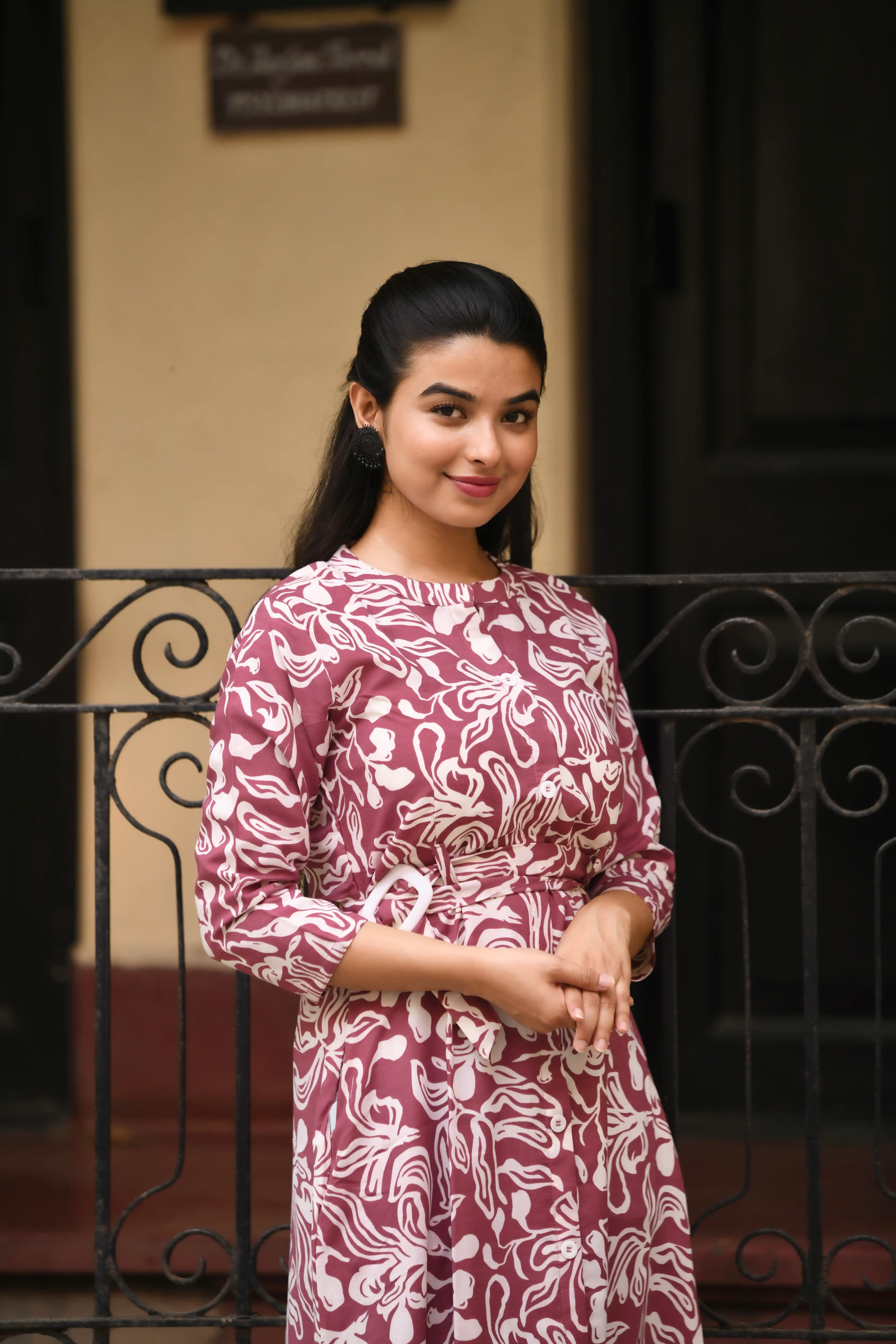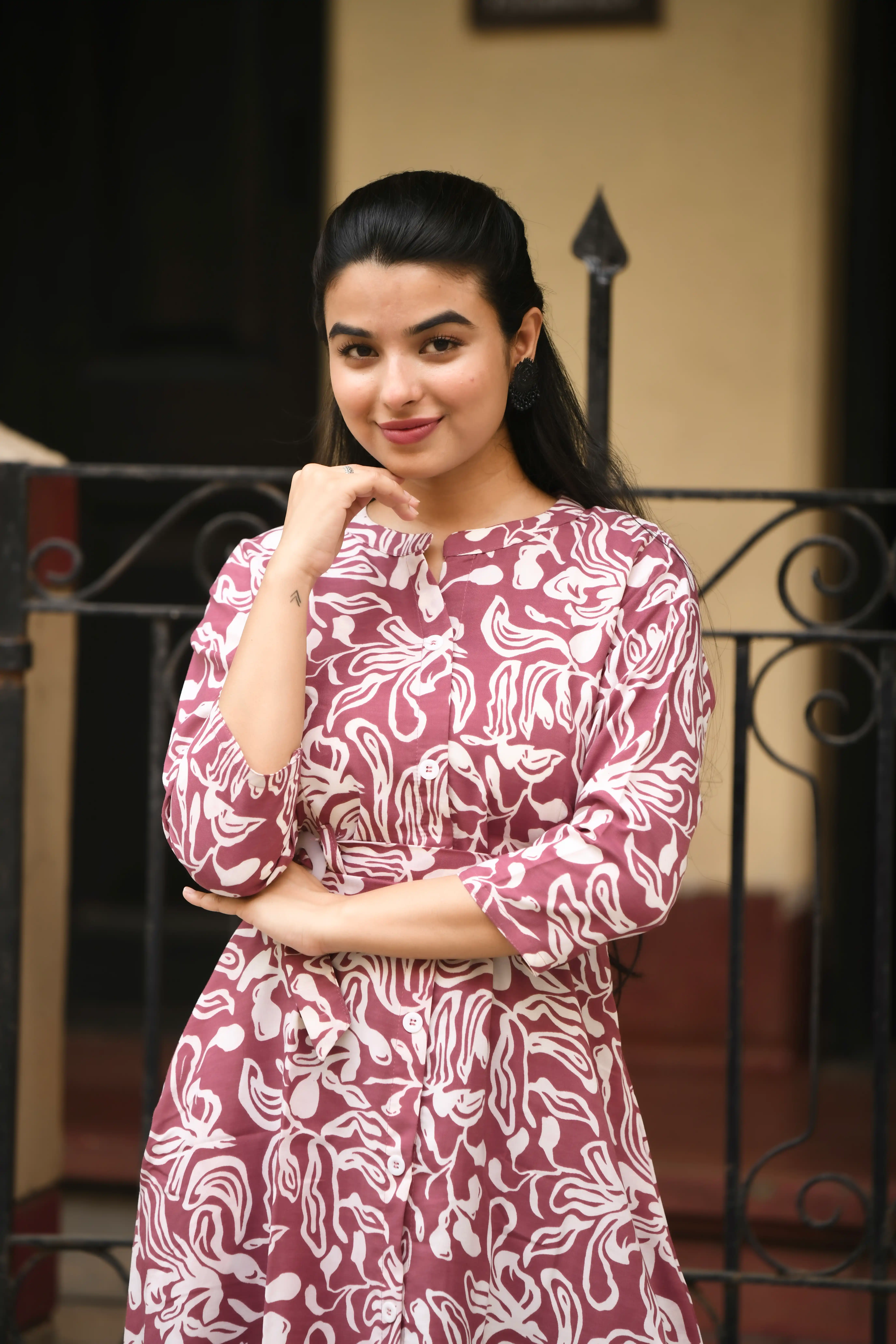 Samvrita Floral Ethinic A-Line Rayon Round Neck Midi Dress