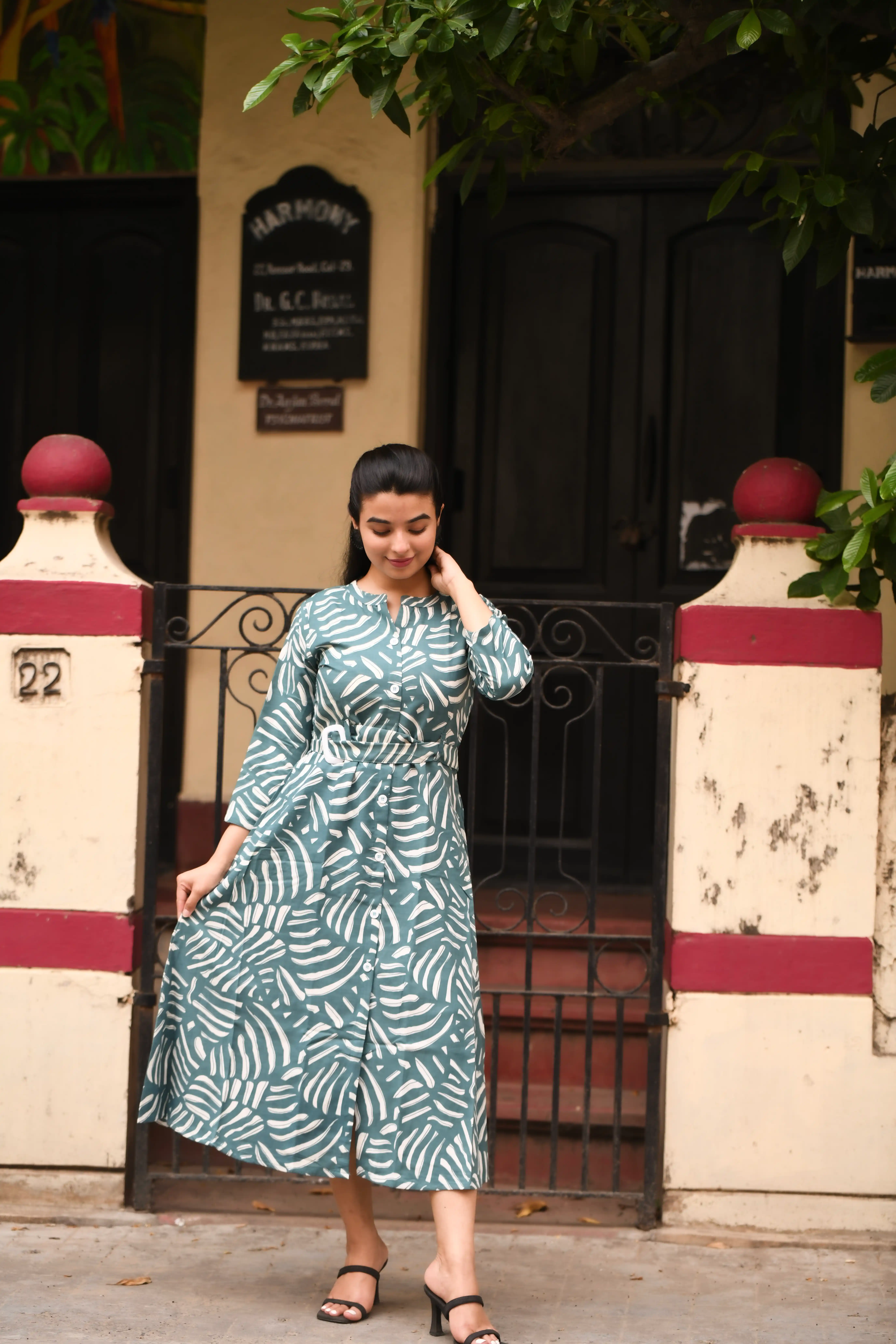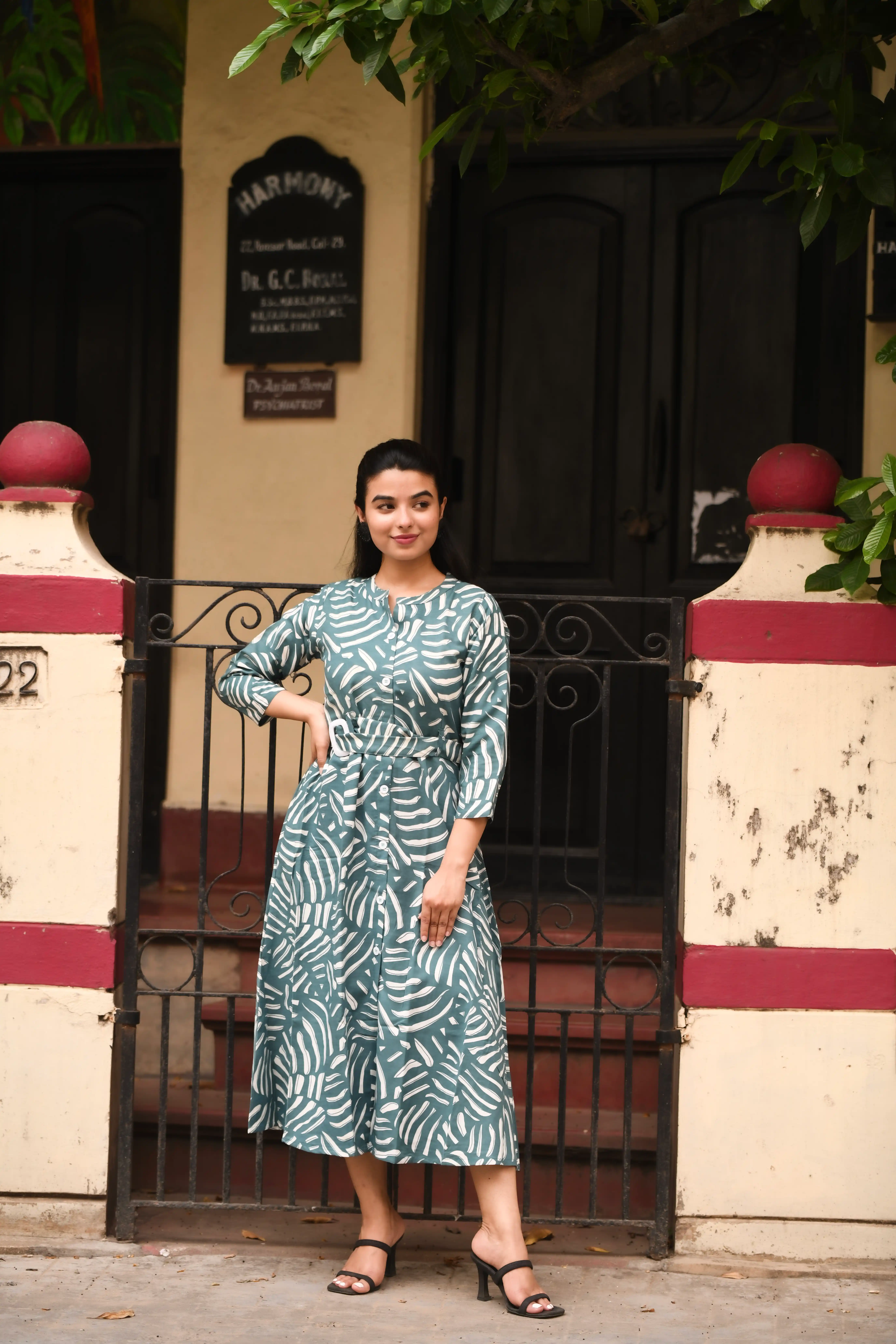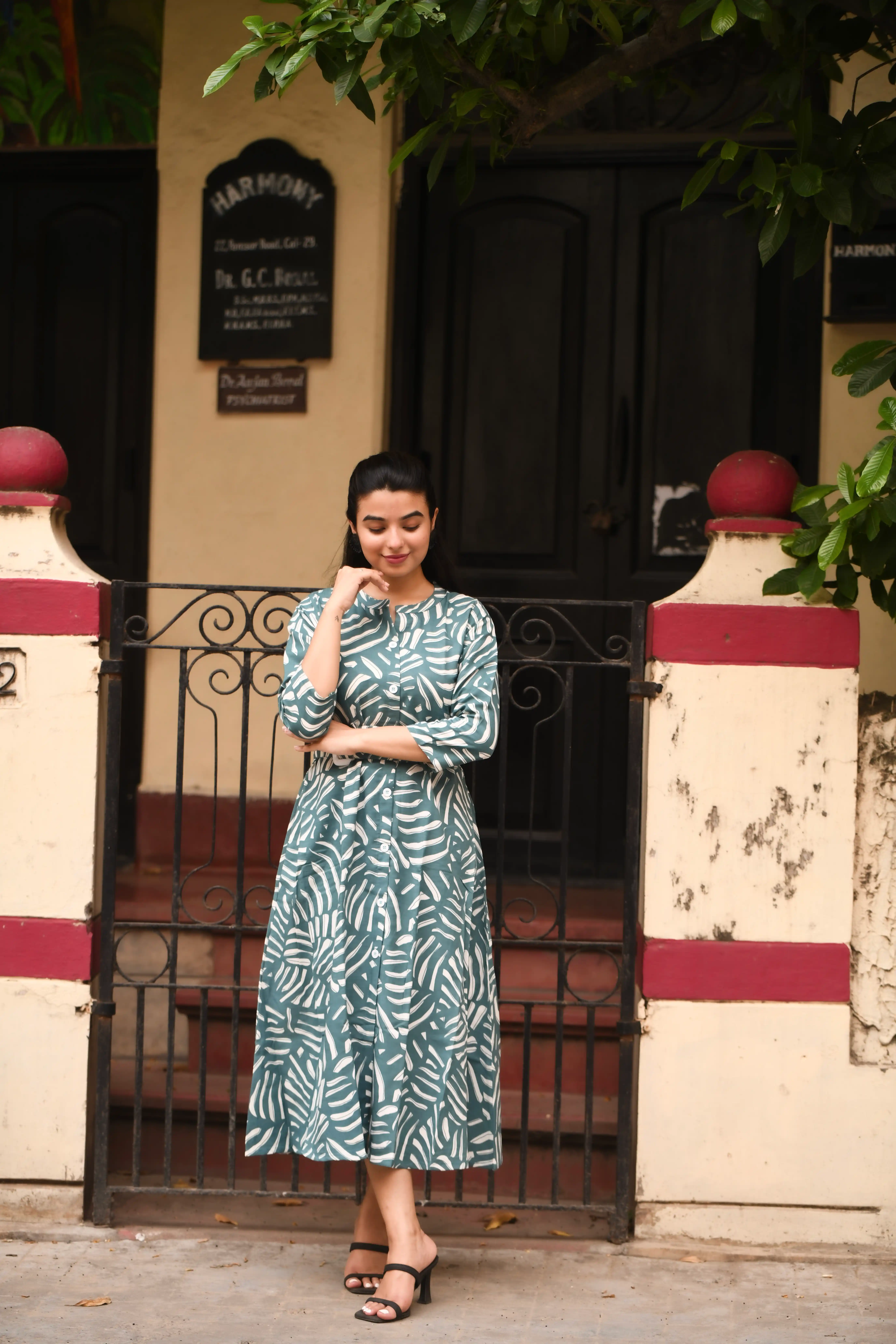 Samvrita Floral Ethinic A-Line Rayon Round Neck Midi Dress