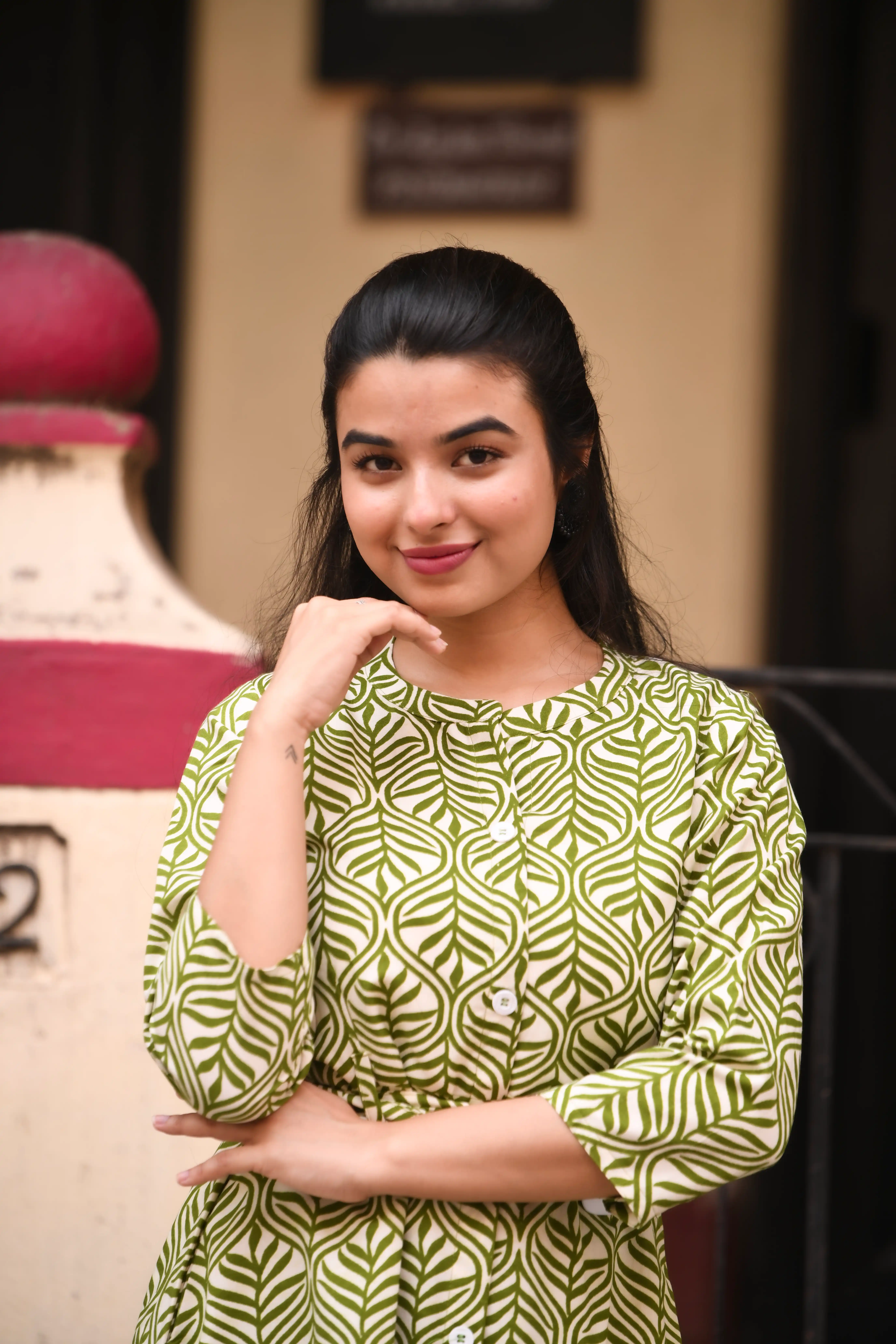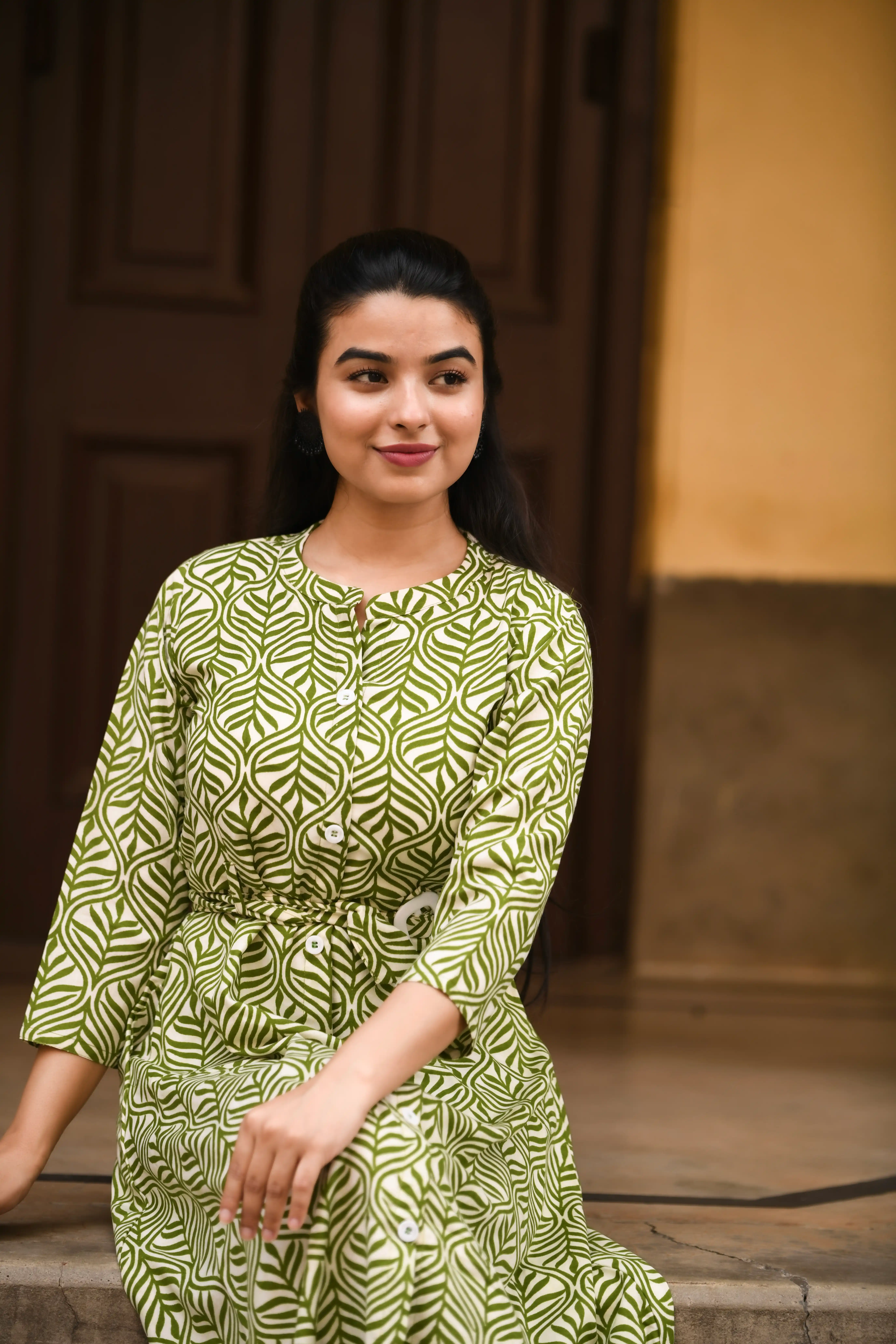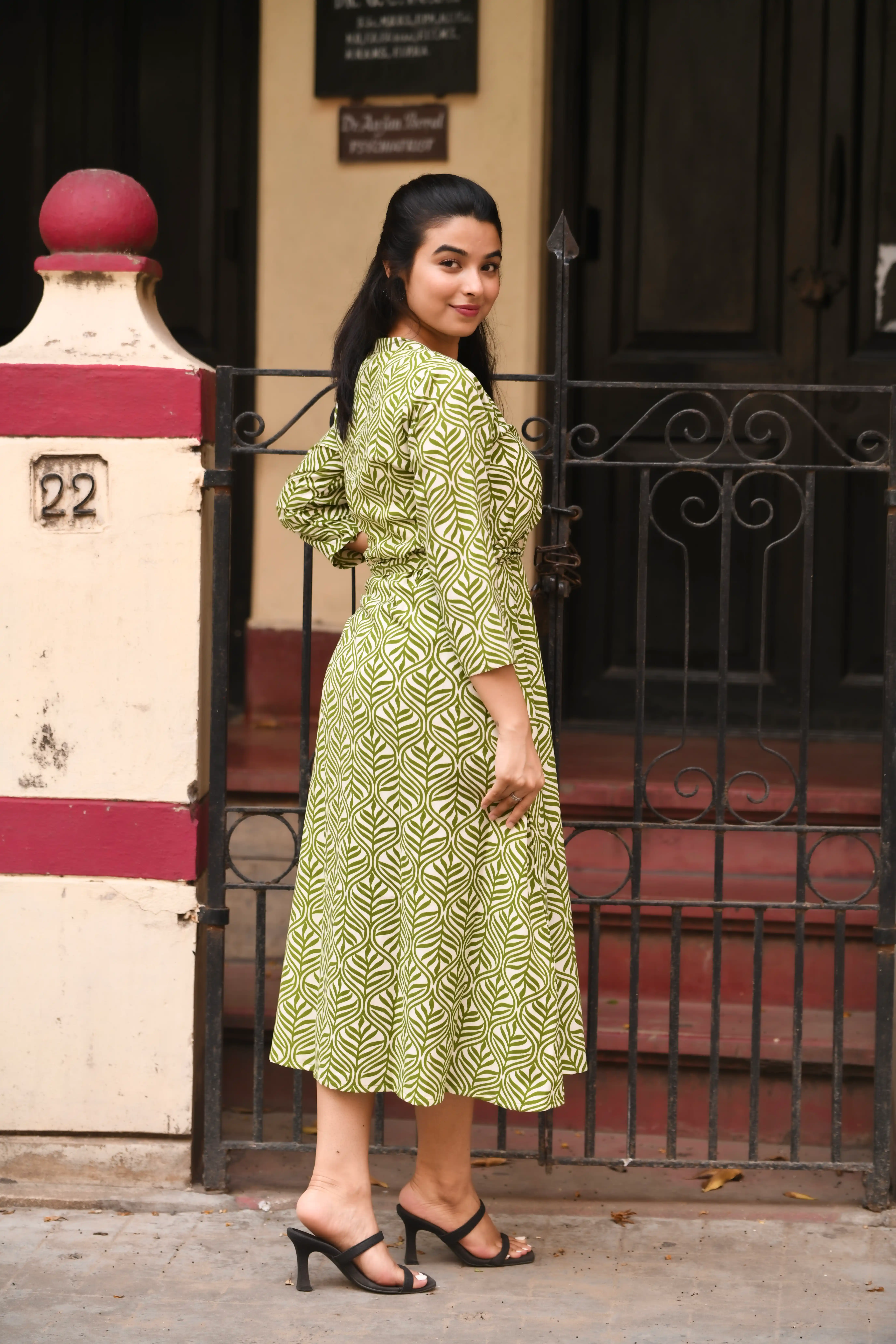 Samvrita Floral Ethinic A-Line Rayon Round Neck Midi Dress