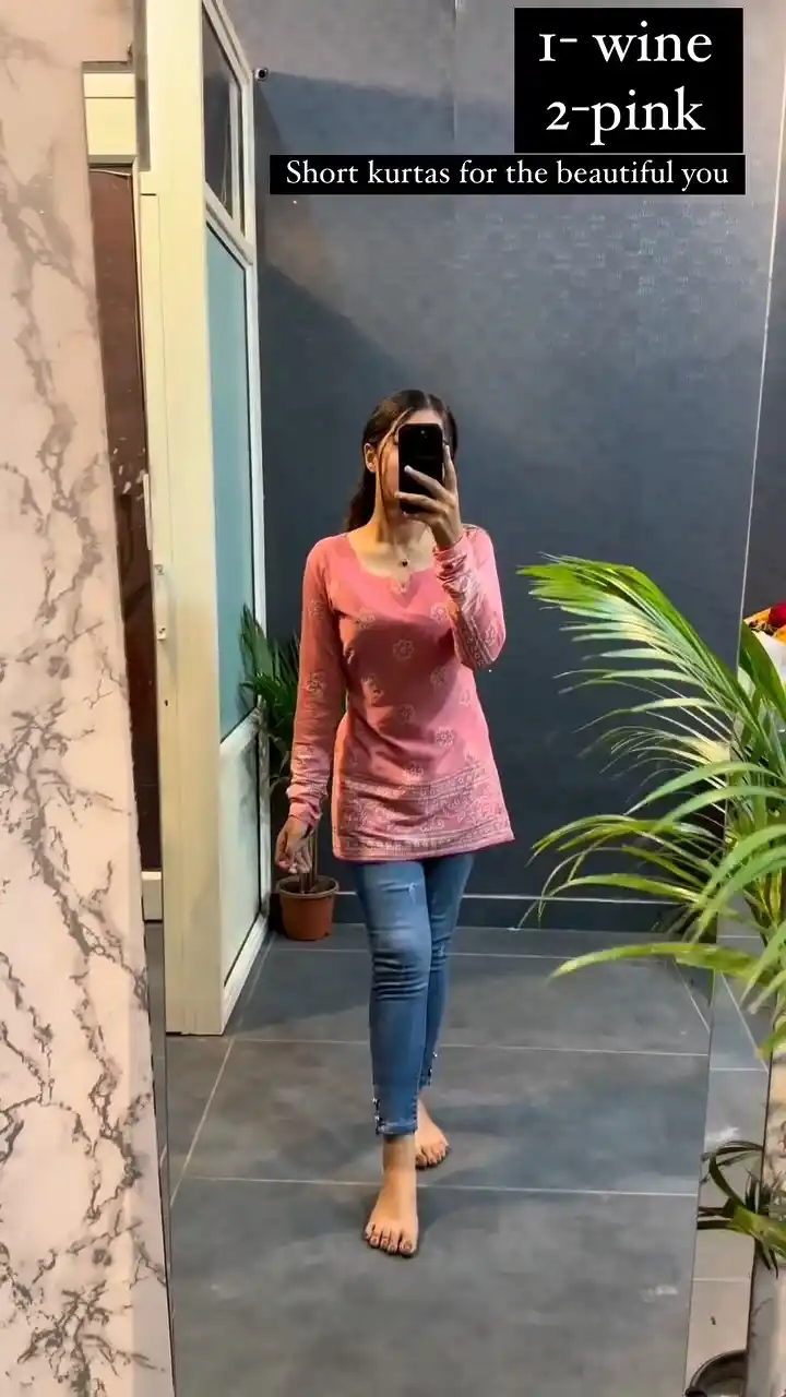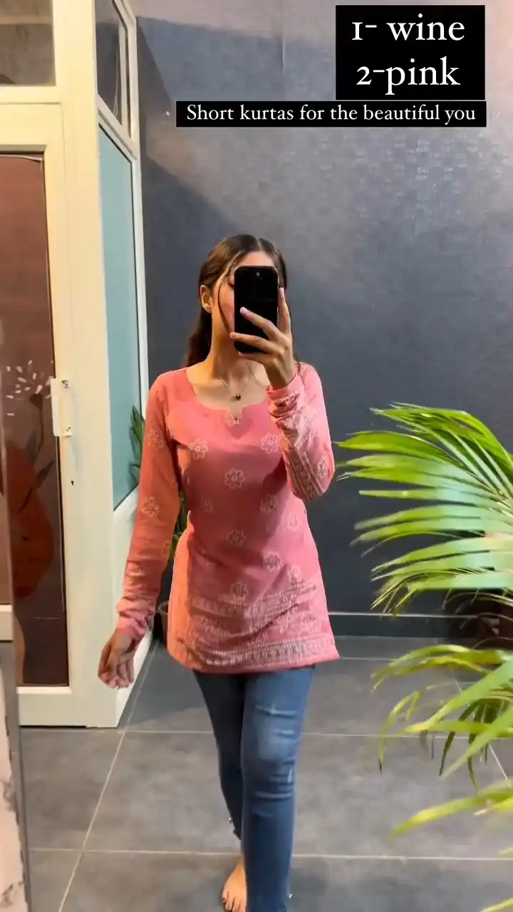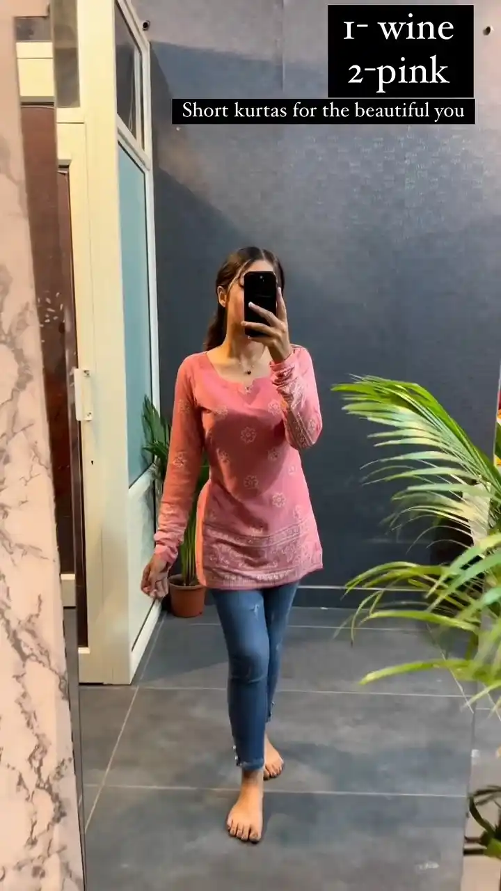 Samvrita Peach Color Printed Rayon Cotton Full Sleeve Top